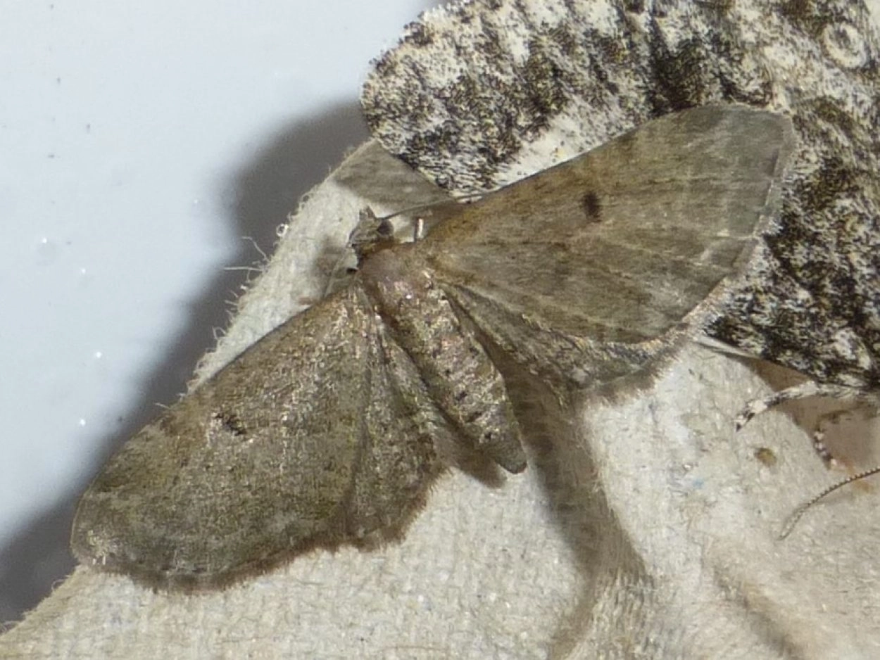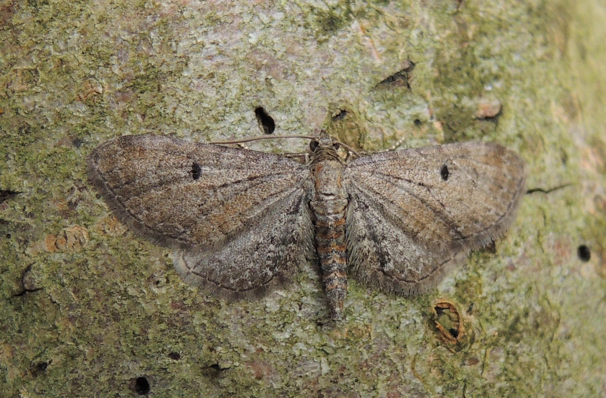 Voorvleugellengte: 11-13 mm. De tamelijk brede voorvleugel heeft een gebogen voorrand en een gelijkmatige bruinachtige grondkleur. Langs de voorrand van de voorvleugel liggen geen duidelijke vlekken, waardoor deze soort te onderscheiden is van enkele andere rood- of grijsachtig bruine Eupithecia-soorten. De middenstip is langwerpig, meestal vrij groot en opvallend. De rest van de vleugeltekening is zeer variabel, van geheel ongetekend tot getekend met een witte golflijn en zwarte aderlijntjes en vaak een lichte dwarsband tussen de golflijn en de middenstip. Het achterlijf heeft geen zwarte band.