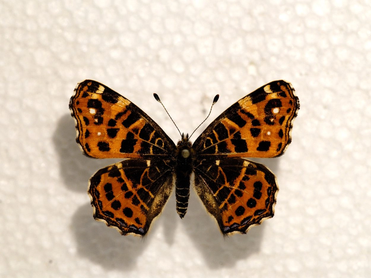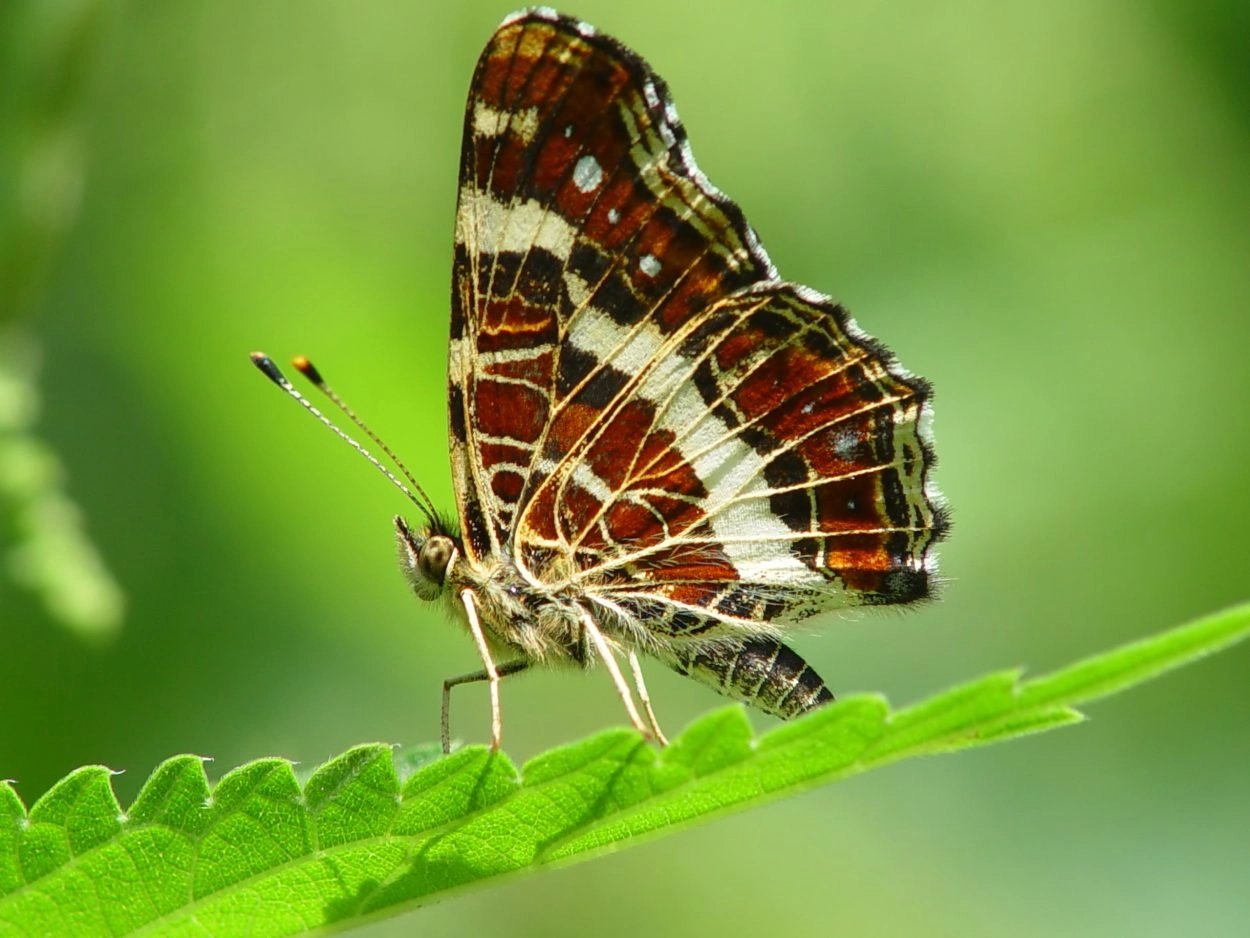 Voorvleugellengte: voorjaarsgeneratie 16-18 mm, zomergeneratie 17-21 mm. Vlinders van de voorjaarsgeneratie en de zomergeneratie verschillen sterk van elkaar, maar de onderkant van de vleugels vertoont altijd een karakteristiek landkaartpatroon. Bij vlinders van de voorjaarsgeneratie is de bovenkant van de vleugels oranjebruin met een zwart vlekkenpatroon, waardoor de vlinder enigszins doet denken aan een parelmoervlinder. De vlinders van de zomergeneratie hebben zwarte bovenvleugels met langs de achterrand een oranjerode gevlekte band en over het midden van de vleugel een witte band.