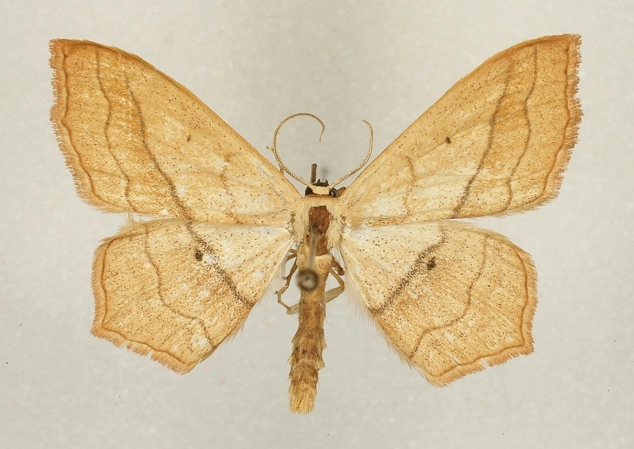 Voorvleugellengte: 13-15 mm. Een goed herkenbare vaalgele spanner met een fijne donkere binnenste- en buitenste dwarslijn en franjelijn, en een dikke middelste dwarslijn met meestal een donkere schaduw aan de buitenzijde. Dit geldt voor zowel de voor- als achtervleugel; alleen de binnenste dwarslijn ontbreekt op de achtervleugel. De middelste dwarslijn loopt licht gebogen en enigszins schuin in de richting van het vleugeluiteinde over de voorvleugel. Op alle vleugels bevindt zich een zwarte middenstip. De achtervleugel heeft halverwege de achterrand een duidelijke punt; voor de voorvleugel geldt dit in mindere mate. De voorvleugel heeft bovendien een scherpe vleugelpunt.