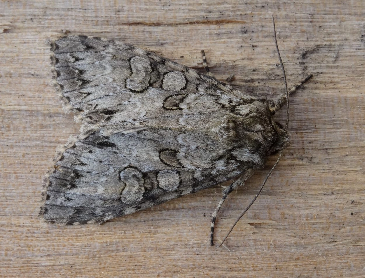 Voorvleugellengte: 21-26 mm. De voorrand van de voorvleugel van deze licht- tot donkergrijze uil is bij de vleugelpunt sterk gebogen. De ringvlek en de niervlek zijn groot, licht gekleurd en donker omrand; de afgeronde tapvlek is vaak iets donkerder. Aan de binnenzijde van de golflijn bevinden zich zwarte pijlvlekken; de op één na grootste daarvan bevindt zich halverwege en de grootste bij de binnenrandhoek.