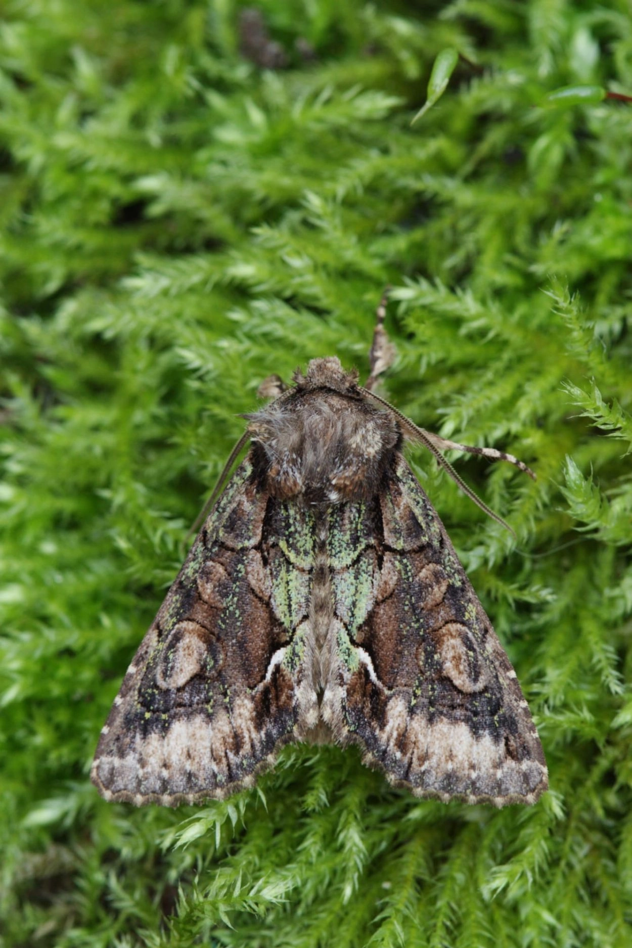 Voorvleugellengte: 17-20 mm. De voorvleugel van deze uil heeft een bruine grondkleur met een variabele koper- tot donkergroene bestuiving, vooral langs de binnenrand en de achterrand. De buitenste dwarslijn heeft vlak bij de binnenrand vaak een kenmerkende witte afzetting, die als een witte halvemaanvormige vlek zichtbaar is. De uilvlekken zijn duidelijk; vooral de niervlek is opvallend groot. Kenmerkend is ook de vrij dikke zwarte schouderstreep die in combinatie met de binnenste dwarslijn soms een soort pijl-en-boog-figuur vormt. Soms komen donkere exemplaren voor.