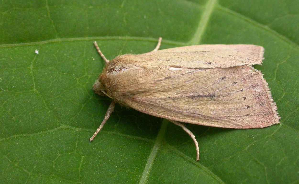 Egelskopboorder (Globia sparganii).N.B.: vergelijk behalve de uiterlijke kenmerken ook de tijd van het jaar waarin de rupsen voorkomen, het habitat en de waardplant(en).