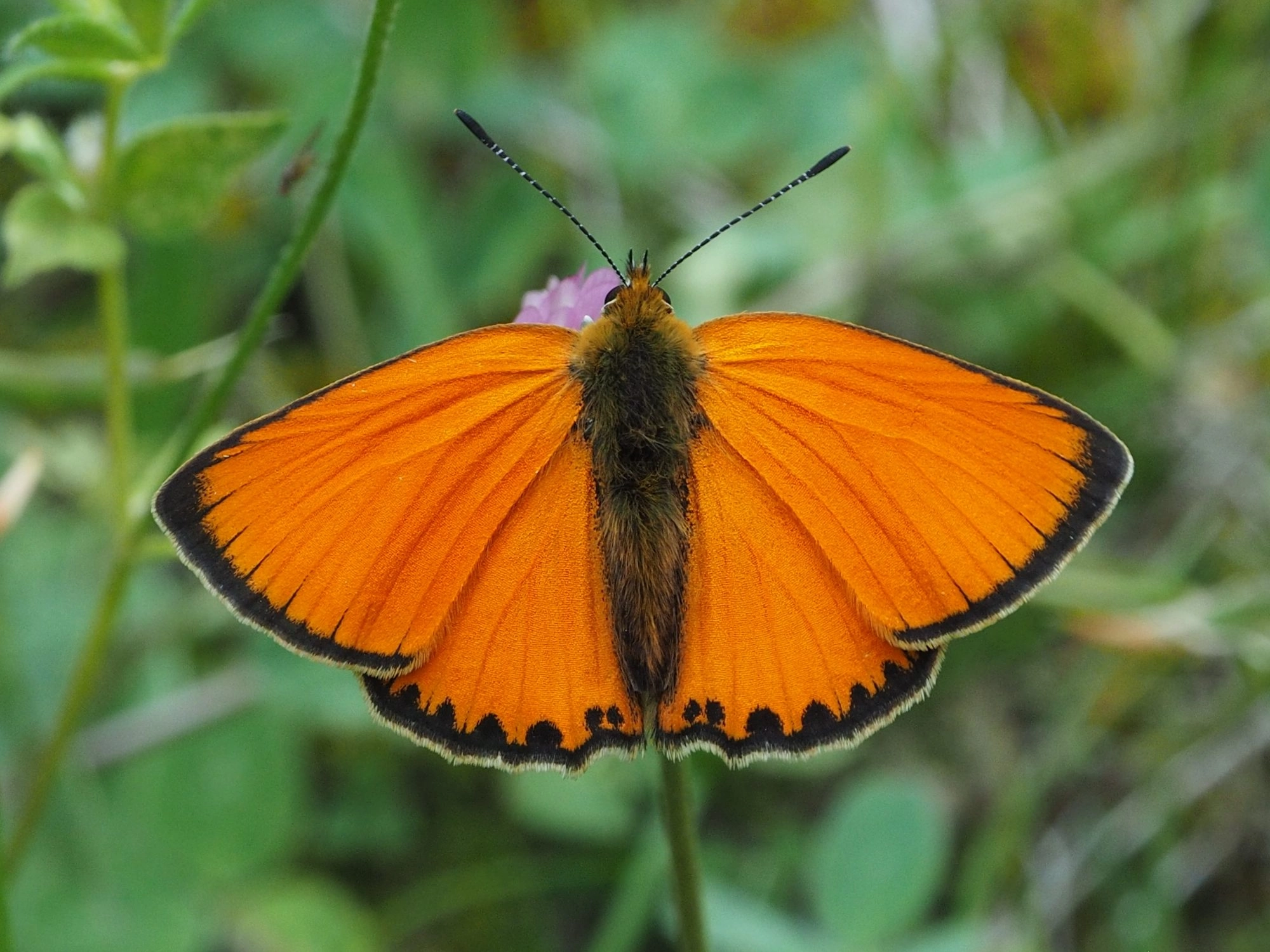 Bij de grote vuurvlinder is de onderkant van de achtervleugel lichtblauw met een oranje band langs de achterrand. Zie ook de rode vuurvlinder.