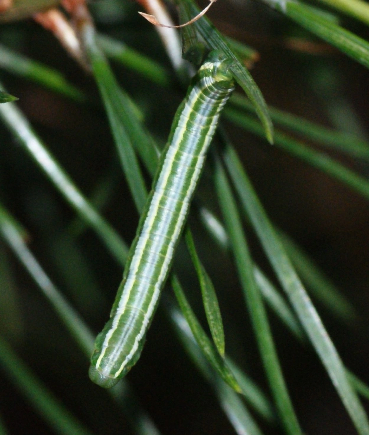 Hoekbanddennenspanner (Pennithera firmata), sparspanner (Thera variata), schijn-sparspanner (Thera britannica), jeneverbesspanner (Thera juniperata), streepjesdwergspanner (Eupithecia intricata), lariksdwergspanner (Eupithecia lariciata), dennenspanner (Bupalus piniaria), dennenbandspanner (Pungeleria capreolaria), lariksspanner (Macaria signaria) en gerimpelde spanner (Macaria liturata). N.B.: vergelijk behalve de uiterlijke kenmerken ook de tijd van het jaar waarin de rupsen voorkomen, het habitat en de waardplant(en).