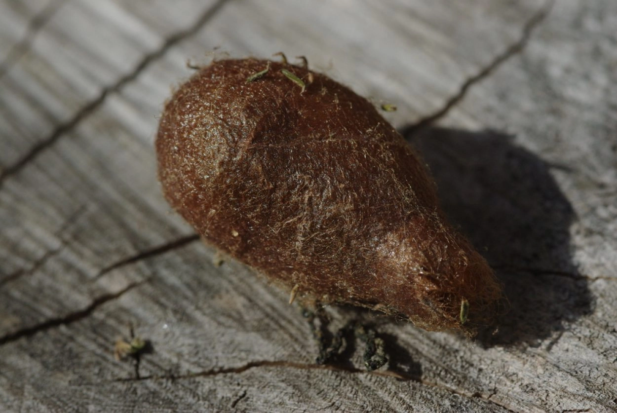 Rups: mei-augustus. De rupsen leven eerst in groepen en zijn overdag vaak goed zichtbaar. De pop overwintert in een lichtbruine stevige papierachtige cocon. Deze heeft de vorm van een urn met rondom de nauwe opening een krans van rechtopstaande stekels om predatoren te weren. De cocon is iets boven de grond vastgemaakt aan plantenstengels. De eieren worden in groepjes afgezet en vastgehecht aan de waardplant.