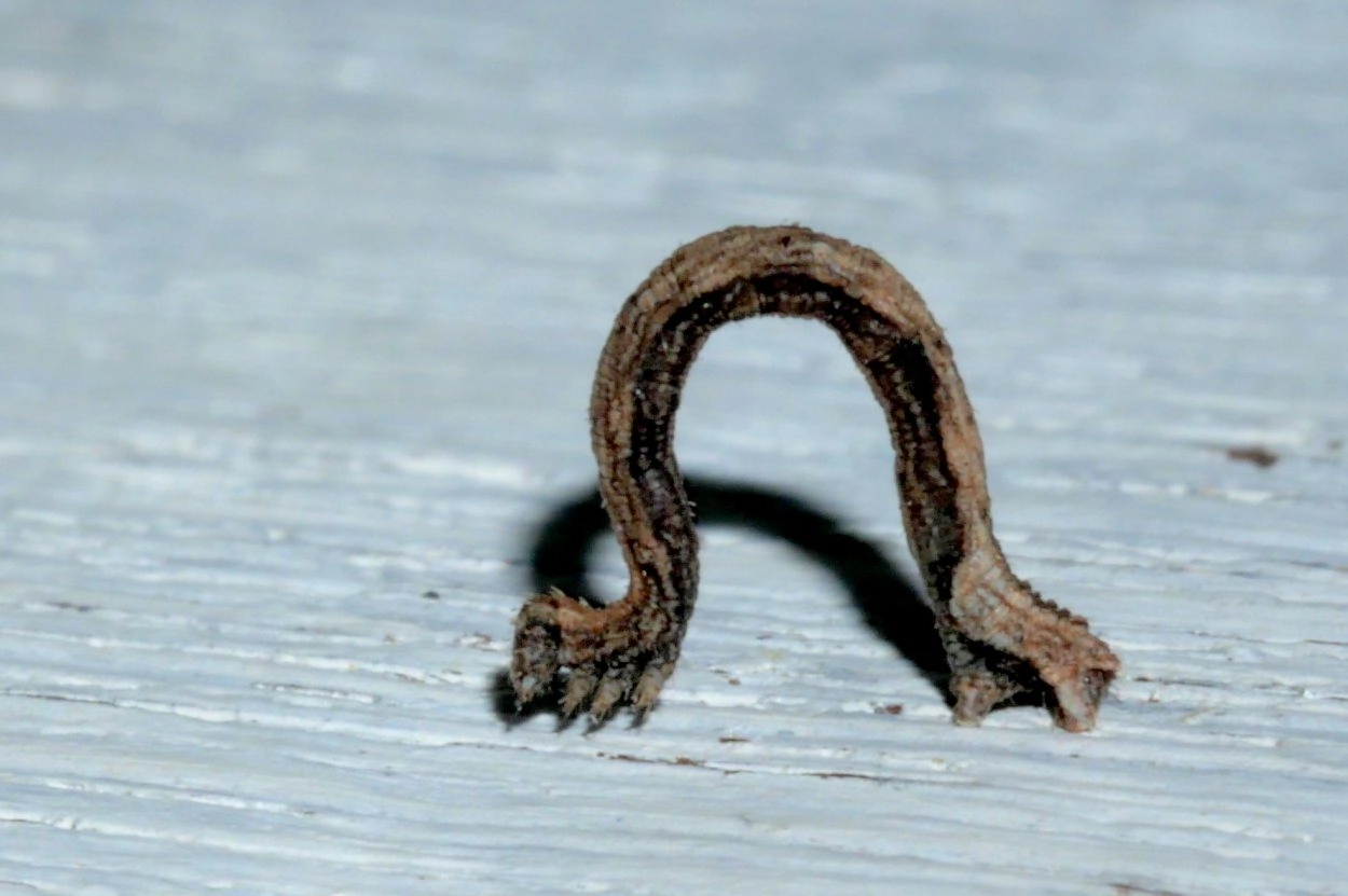 Vlekstipspanner (Idaea dimidiata) en hopdwergspanner (Eupithecia assimilata). N.B.: vergelijk behalve de uiterlijke kenmerken ook de tijd van het jaar waarin de rupsen voorkomen, het habitat en de waardplant(en).