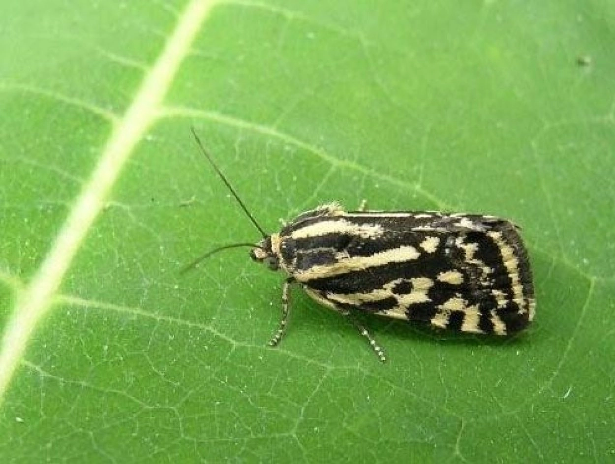 Voorvleugellengte: 10-11 mm. Door de geringe grootte en de vleugelvorm met de sterk gebogen voorrand doet deze soort op het eerste gezicht soms meer aan een microvlinder dan aan een uil denken. Karakteristiek is het bonte patroon van zwartachtig chocoladebruine vlekken en strepen op de geelachtige of crèmekleurige voorvleugel. De achtervleugel is donkerbruin en heeft een witachtige franje.