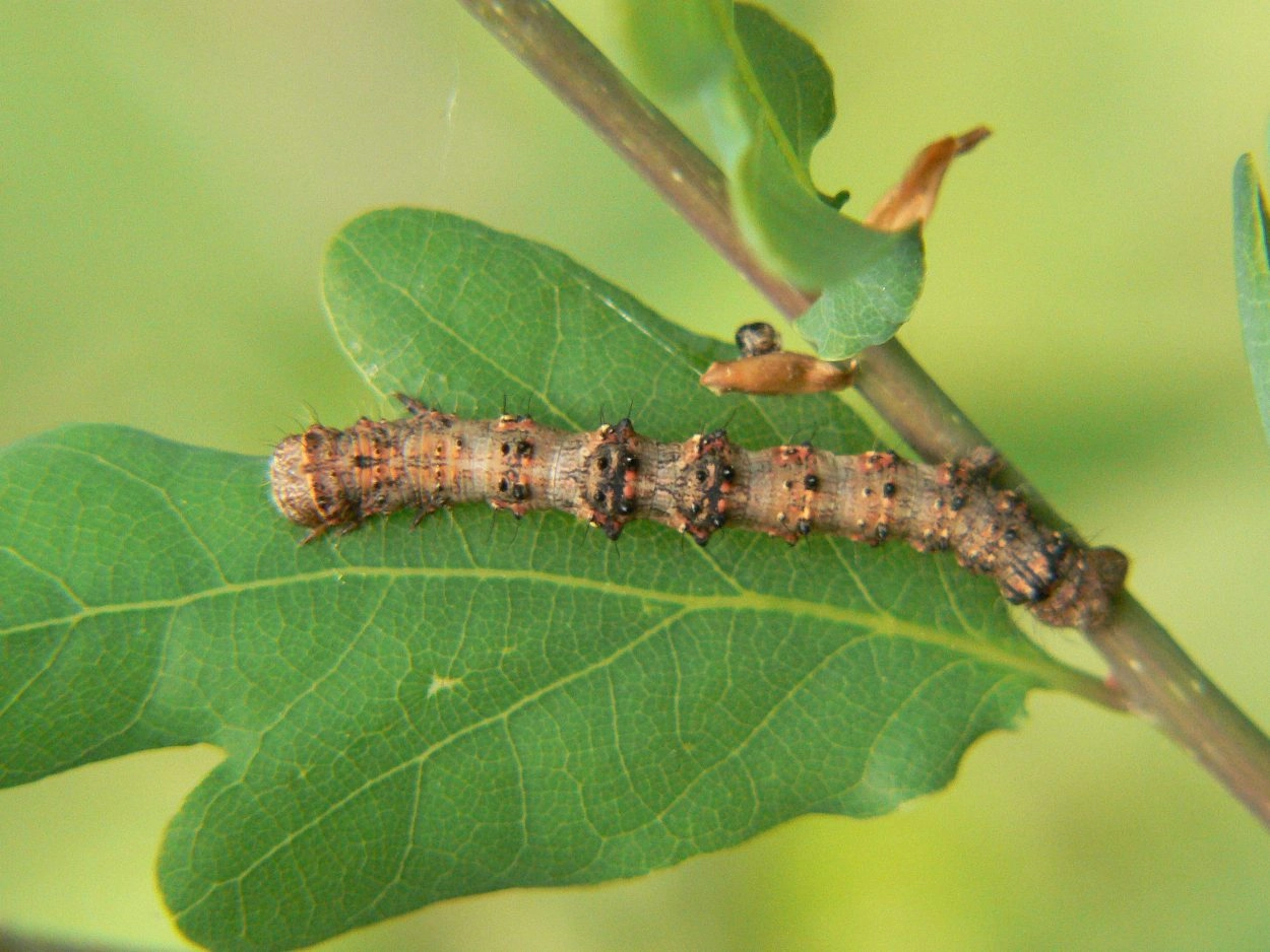 Voorjaarsspanner (Apocheima hispidaria).N.B.: vergelijk behalve de uiterlijke kenmerken ook de tijd van het jaar waarin de rupsen voorkomen, het habitat en de waardplant(en).