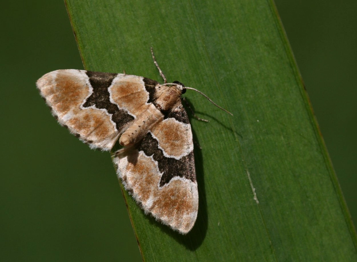 Voorvleugellengte: 13-17 mm. Op de lichtbruine voorvleugel bevindt zich een opvallende donkergrijze of zwarte middenband, die aan de buitenrand een groot uitsteeksel heeft. Deze donkere band is afgezet met brede witte lijnen en soms in het midden onderbroken; verder is er nauwelijks enige variatie.