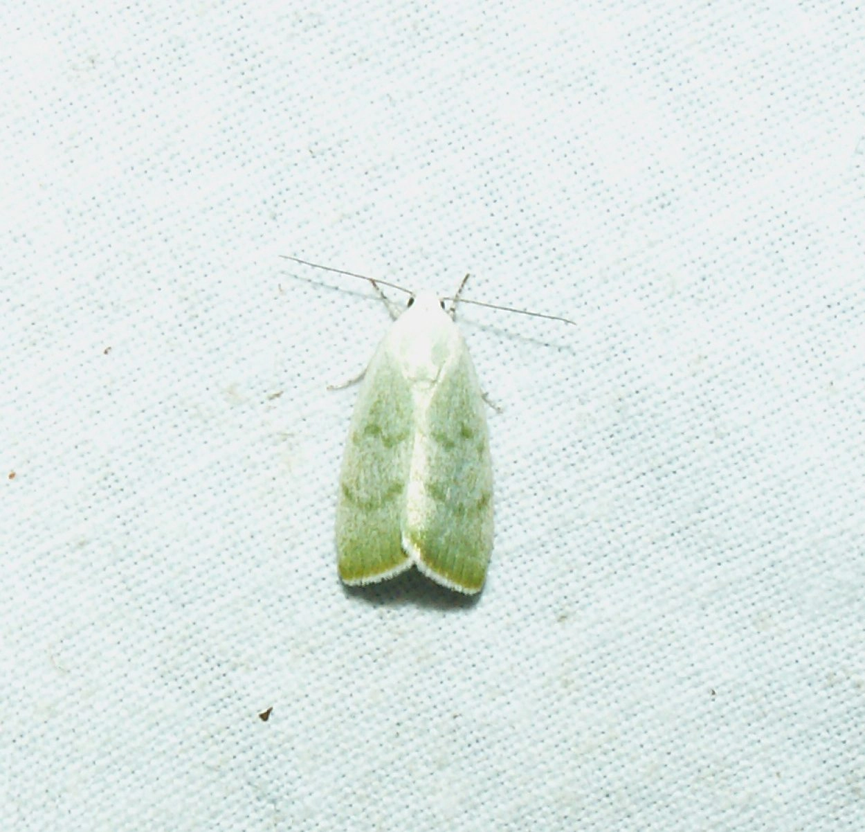 Voorvleugellengte: 10-12 mm. Dit visstaartje heeft dezelfde dakvormige rusthouding als de even grote kleine groenuil (E. clorana). De kleur is grijsachtig groen. Het zoomveld is donkerder gekleurd dan de rest van de voorvleugel en gaat via een smalle geelbruine zone over in de franje die helder afsteekt en aan het uiteinde wit gekleurd is. De voorrand van de voorvleugel is witachtig. Over de vleugel lopen twee, enigszins vage, maar goed zichtbare donkergroene dwarslijnen die niet evenwijdig aan elkaar lopen; de binnenste vertoont een golvend zigzagverloop. De achtervleugel is wit met een groenige bestuiving aan de achterrand en op de franje.