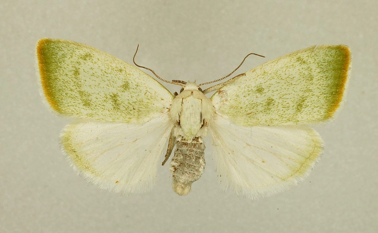 Ter Haar: Rups groenachtig wit met zwarte lengtestrepen en zwarte haren.Ebert: De jonge rupsen van clorana en vernana zijn op basis van uiterlijke kenmerken nagenoeg niet van elkaar te onderscheiden. Bij het groeien verliest de rups van vernana de donkere elementen. Bij het vreten van de wittige onderzijde van het blad produceert de rups langwerpige vlokken die later ook in de cocon worden verwerkt. De (nagenoeg) volwassen rups heeft een gedrongen, gebogen vorm; de grondkleur is meelwit tot groenachtig witgrijs net als de bladonderkant van de zilverpopulier. Op de rug twee licht- tot middelbruine vlekjes.