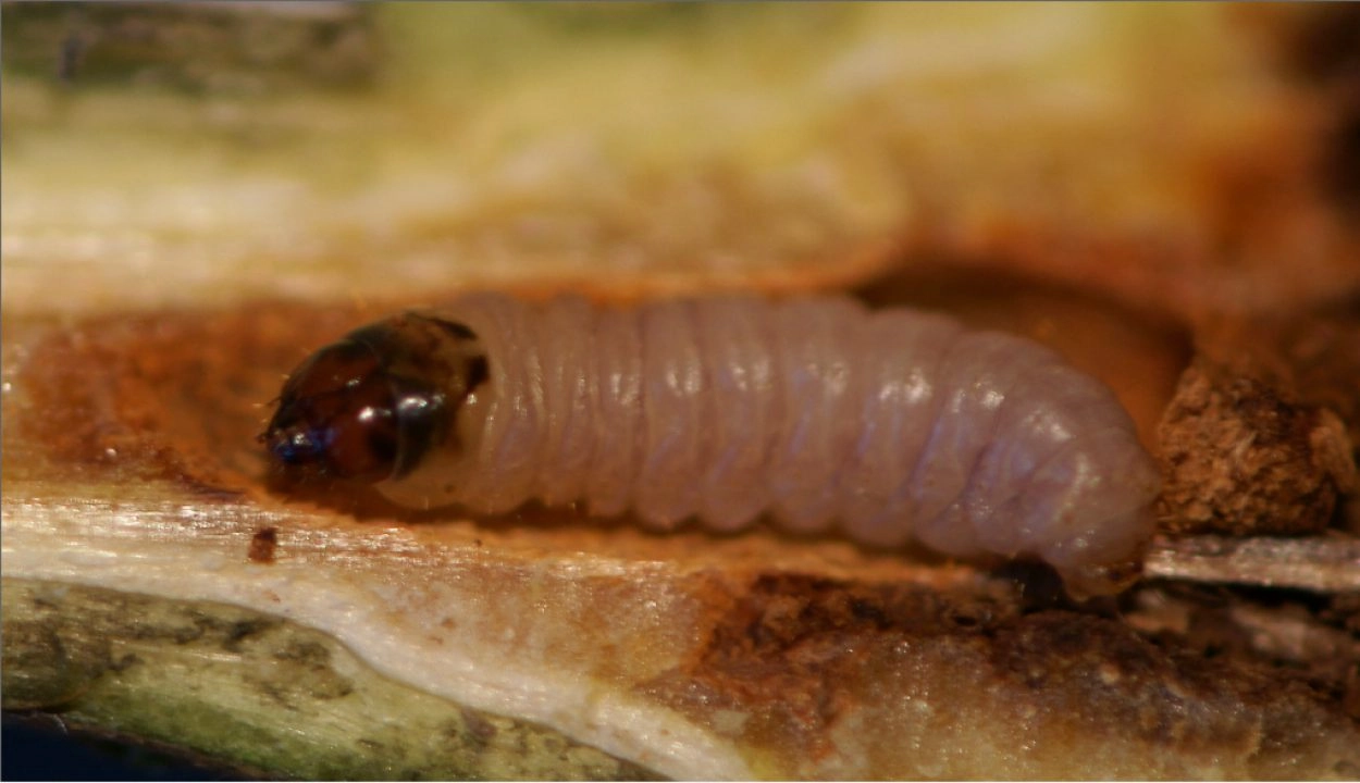 Rups: juli-mei. De rups overwintert tweemaal. Meestal worden de eieren gelegd in een twijgoksel of op een bladrand van de waardplant. De rupsen boren zich bij voorkeur een twijg in op plaatsen waar de bast is beschadigd. Van daaruit wordt een tunnel door het binnenste van de twijg geboord waarbij een spoelvormige gal ontstaat waarin de rups overwintert en zich in mei verpopt. De eieren kunnen ook op de stam worden afgezet; in dat geval foerageert de rups onder de bast of in de wortels en verpopt zich net onder de bast.