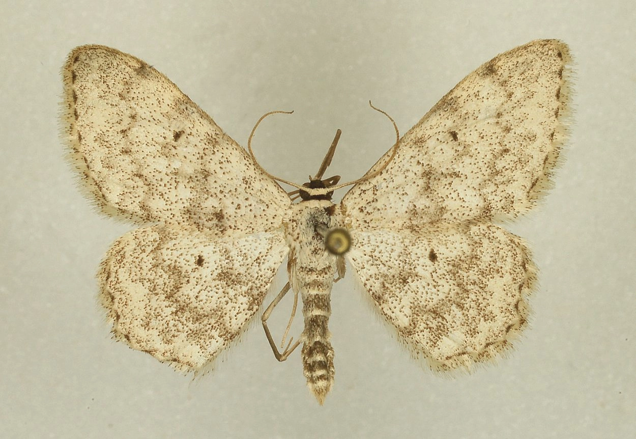 Zie de paardenbloemspanner (Idaea seriata).Bekijk de gedetailleerde verschillen met illustraties tussen zeven Scopula- en drie Idaea-soorten.
