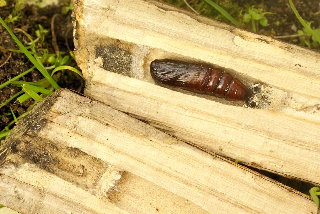 Rups: juni-oktober. De rupsen knagen een holte in dood hout en maken de uitgang dicht met zijde en houtsplinters. De soort overwintert als pop in deze holte.