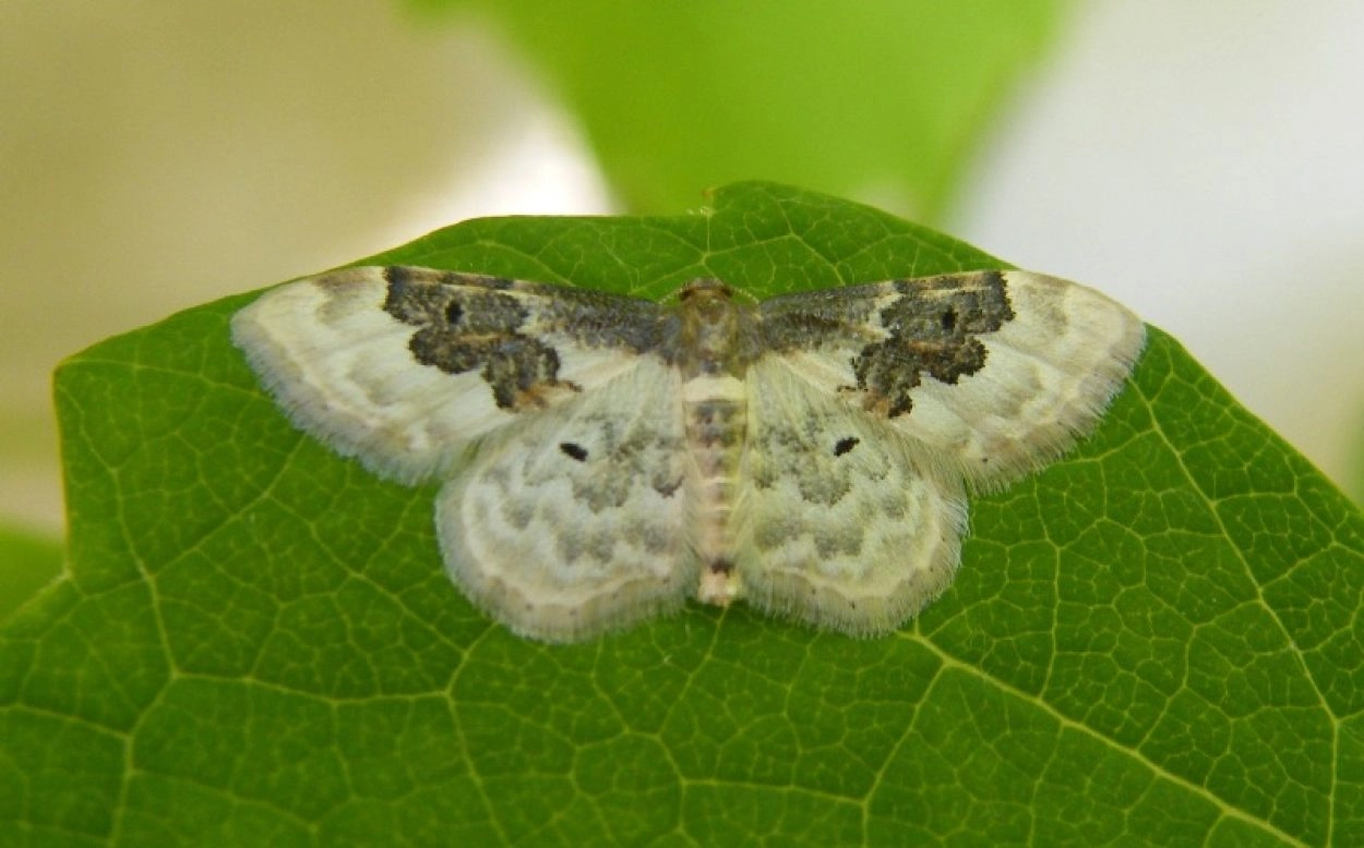 Voorvleugellengte: 9-11 mm. Deze kleine spanner heeft een witachtige grondkleur met een vage grijsbruine tekening. Over de voorvleugel loopt een opvallend grillige zwartachtig bruine middenband die zich in een lichtere tint voortzet over de achtervleugel. Dezelfde donkere kleur van de middenband is ook aanwezig in de vleugelwortel en loopt vandaar door over het borststuk. Op alle vleugels bevindt zich een duidelijke zwarte middenstip. De tekening varieert in intensiteit.