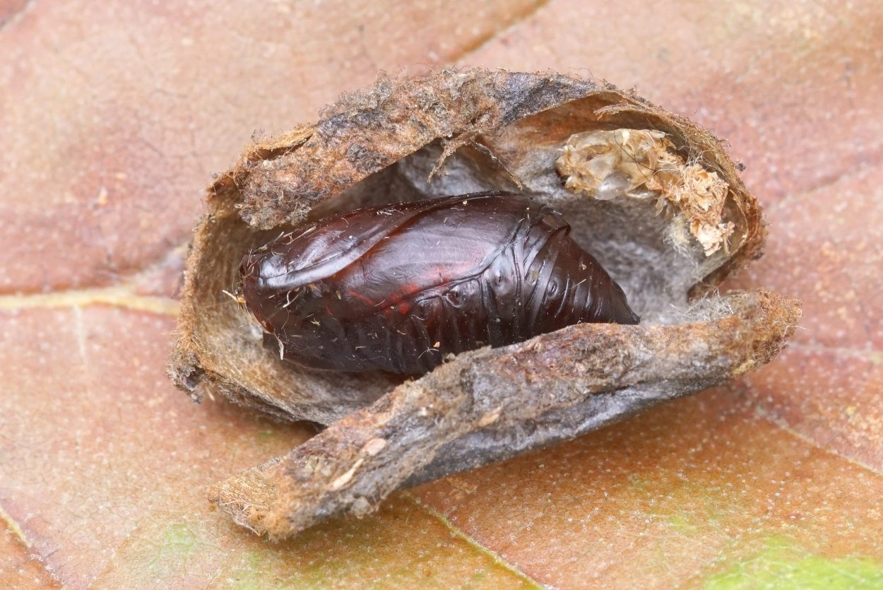 Rups: juni-oktober. De rups foerageert overdag onbeschut op de waardplant. De soort overwintert als pop in een stevige cocon, meestal onder mos op een boomstam.
