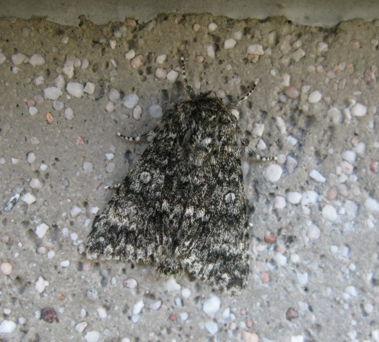 Voorvleugellengte: 17-20 mm. De voorvleugel is, vooral bij het vrouwtje, vrij breed en heeft een afgeronde vleugelpunt. De kleur is grijsachtig crèmewit met een fijne, grauwe tot zwarte spikkeling. De lichte ringvlek is meestal goed te onderscheiden, de niervlek is onopvallend; aan de buitenzijde van de niervlek ligt vaak een iets lichter gekleurd veld. Sommige exemplaren hebben een vrijwel geheel zwartachtige voorvleugel met vaak een extra opvallende, licht omrande ringvlek. De achtervleugel is witachtig bij het mannetje en grijsachtig bij het vrouwtje; langs de achterrand ligt soms een onduidelijke grijze band.