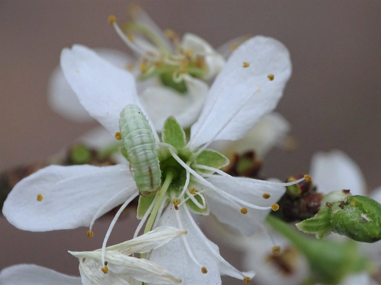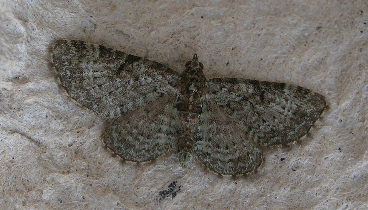Groene dwergspanner (Pasiphila rectangulata).N.B.: vergelijk behalve de uiterlijke kenmerken ook de tijd van het jaar waarin de rupsen voorkomen, het habitat en de waardplant(en).