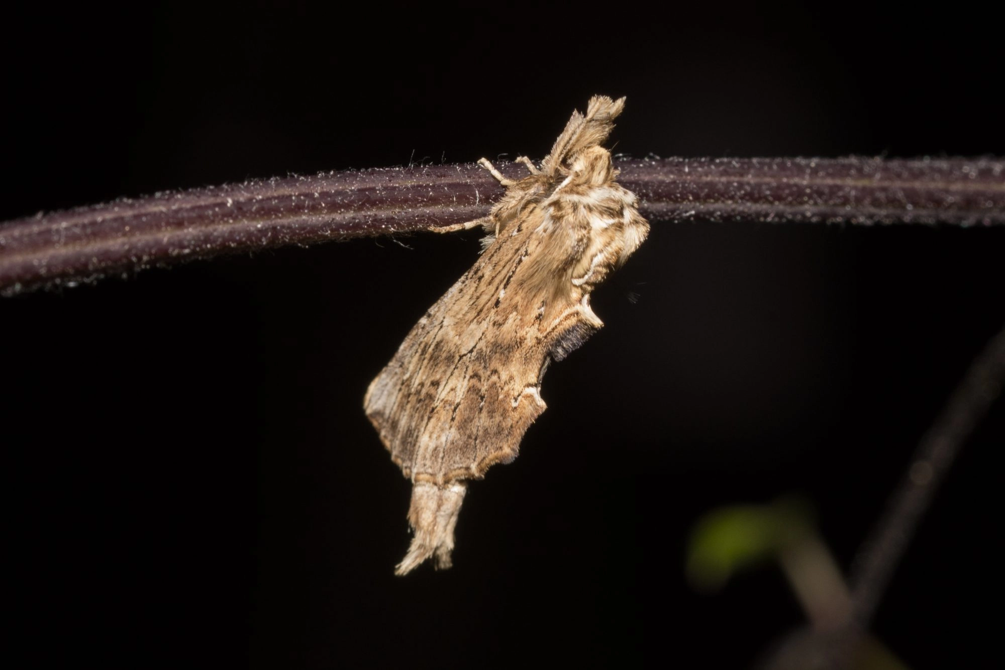 Berkentandvlinder (Odontosia carmelita).N.B.: vergelijk behalve de uiterlijke kenmerken ook de tijd van het jaar waarin de rupsen voorkomen, het habitat en de waardplant(en).