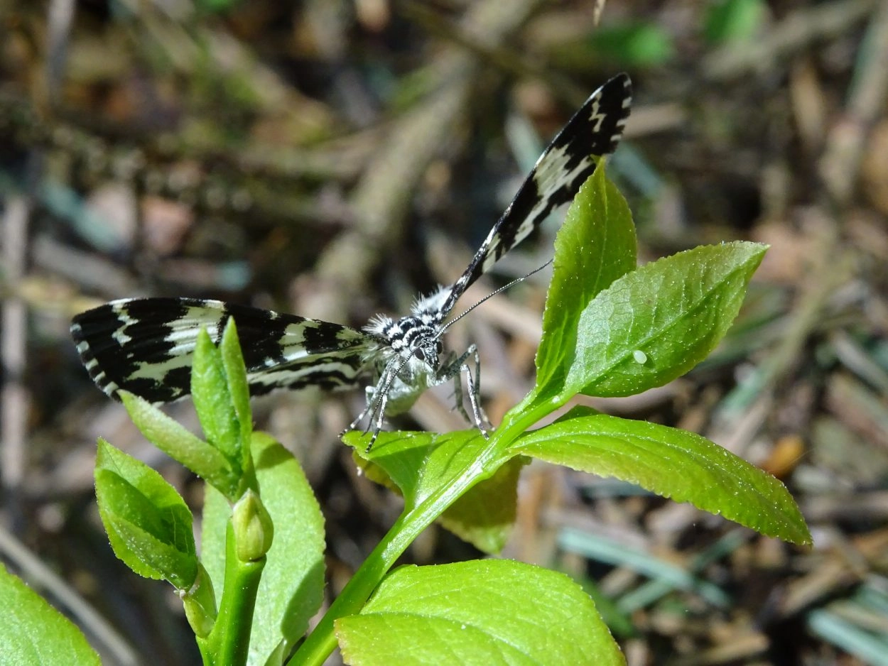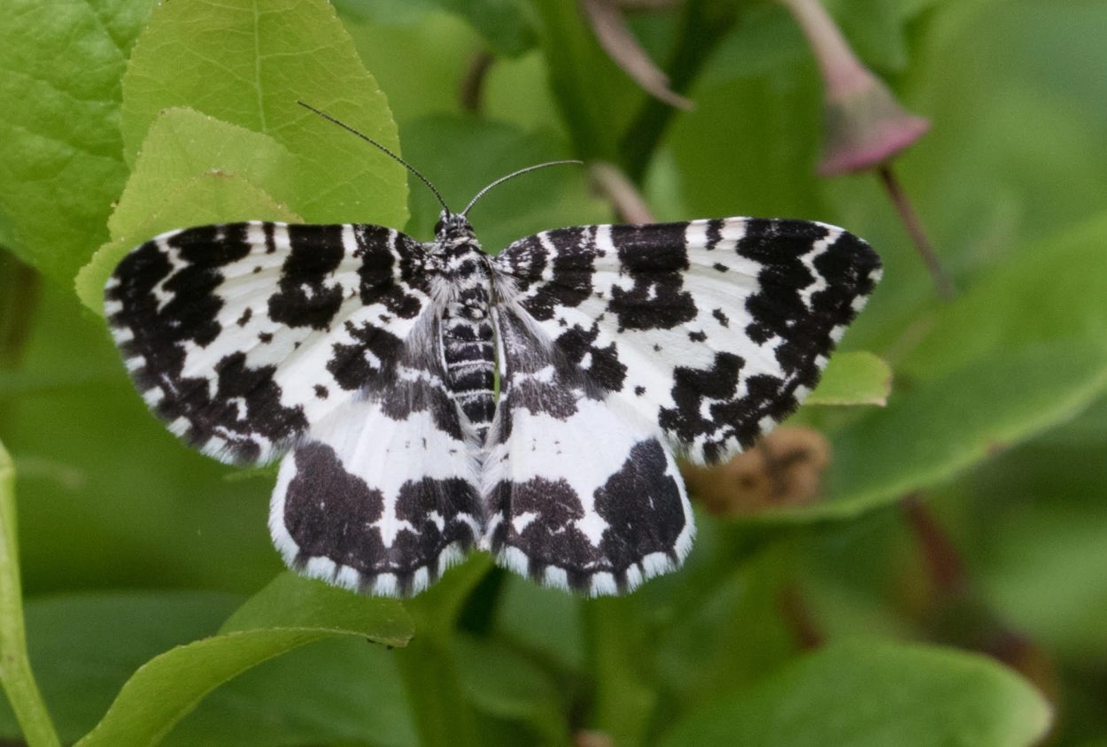 Voorvleugellengte: 14-19 mm. Goed te herkennen aan de kenmerkende zwart-witte tekening op de voor- en achtervleugel die bestaat uit een afwisseling van zwarte en witte dwarsbanden. Karakteristiek zijn de witte ‘speerpunten’ die vanuit de brede buitenste witte dwarsband de vleugelzoom insteken. De grens tussen deze dwarsband en het zwarte zoomveld is onregelmatig geschulpt. Aan de binnenzijde van de vleugel ligt nog een duidelijk en relatief breed wit dwarsbandje; dit staat soms in verbinding met de brede buitenste witte dwarsband. De dwarsbanden bevatten doorgaans relatief weinig (op de achtervleugel vaak geen) kleine zwarte stipjes. Vooral de buitenste witte dwarsband maakt daardoor een des te bredere witte indruk. Zowel de grootte als de tekening, met name de verhouding tussen zwart en wit, zijn variabel.