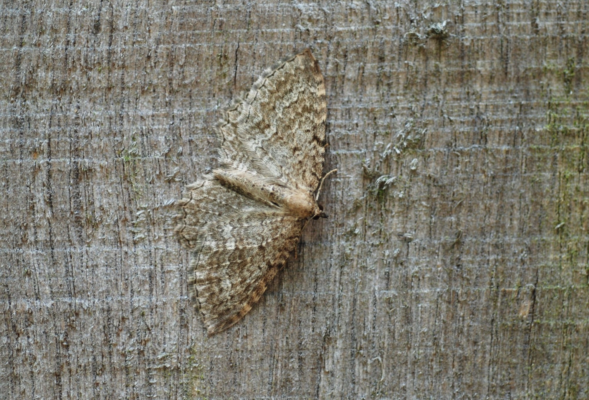 Voorvleugellengte: 13-16 mm. Een vale, lichtgrijsachtig bruine spanner met op de voorvleugel een groot aantal vage dwarslijnen en net naast het midden, in de richting van de vleugelwortel, een kleine ronde stip. De franje is grijs en bruingeel geblokt en de achterrand van de achtervleugel is geschulpt. Het vrouwtje is vaak iets groter dan het mannetje. Mannetjes in rust houden het lange achterlijf vaak wat omhoog gekruld.