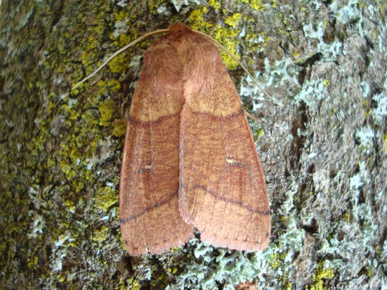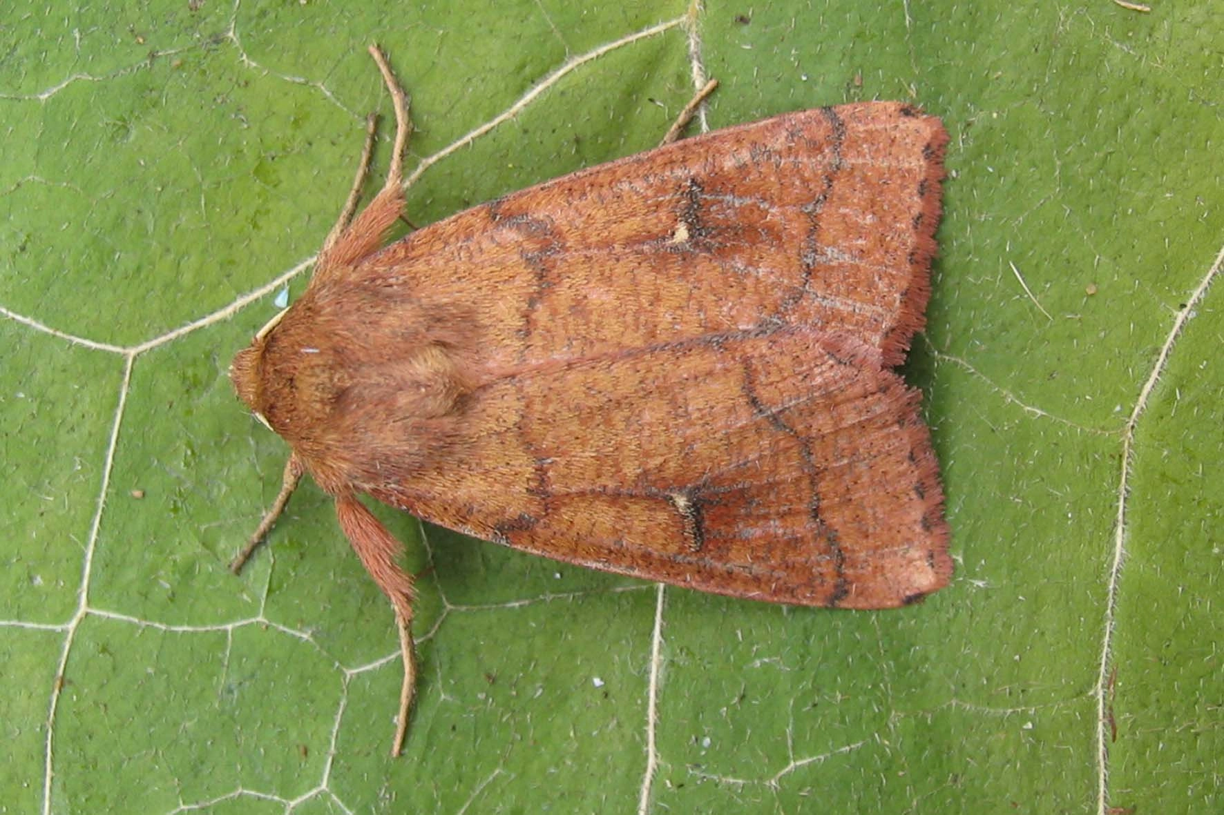 Voorvleugellengte: 18-23 mm. Deze grote uil is te herkennen aan de brede warmbruine, soms rossig getinte voorvleugel en de opvallende, brede donkere middelste dwarslijnen. In het middenveld bevindt zich een kenmerkende witte vlek die enigszins doet denken aan een gleuf.