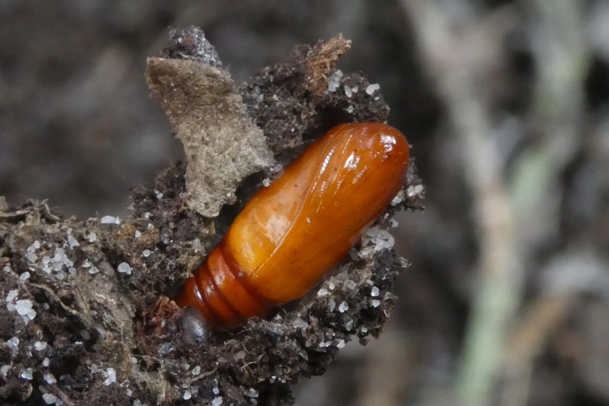 Eind april-eind juni in één generatie. De vlinders kunnen opgejaagd worden vanuit varenplanten en komen goed op licht.