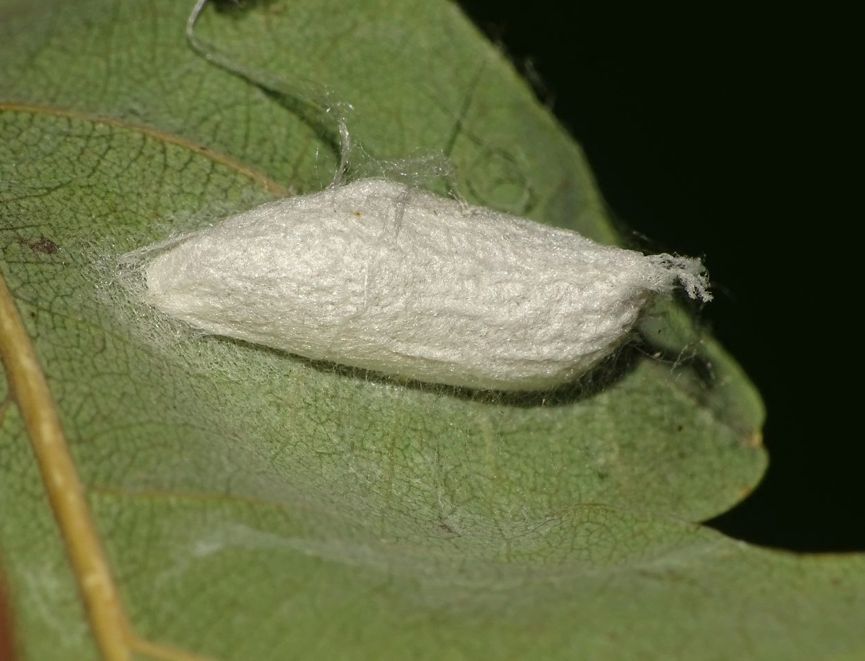 Rups: mei-september. De rups leeft in een spinsel aan het uiteinde van de takken en heeft een duidelijke voorkeur voor eiken met een warme standplaats. De verpopping vindt plaats in een stevige cocon in de vorm van een bootje, vastgemaakt aan de onderzijde of bovenzijde van een blad van de waardplant of op een tak. De soort overwintert als vlinder in de strooisellaag onder de waardplant of in naaldbomen.