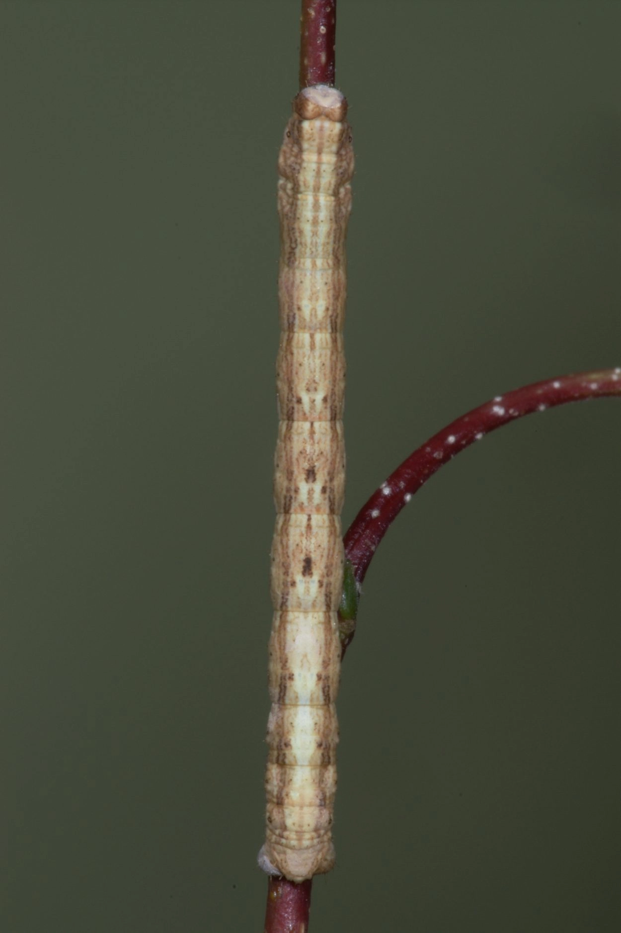 Taxusspikkelspanner (Peribatodes rhomboidaria).N.B.: vergelijk behalve de uiterlijke kenmerken ook de tijd van het jaar waarin de rupsen voorkomen, het habitat en de waardplant(en).