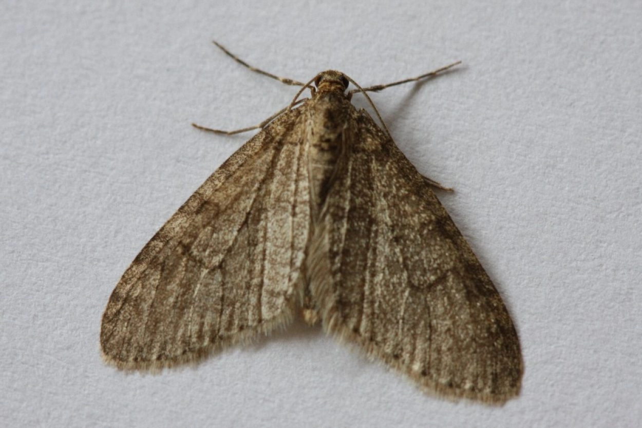 Ligusterblokspanner (Trichopteryx polycommata). N.B.: vergelijk behalve de uiterlijke kenmerken ook de tijd van het jaar waarin de rupsen voorkomen, het habitat en de waardplant(en).