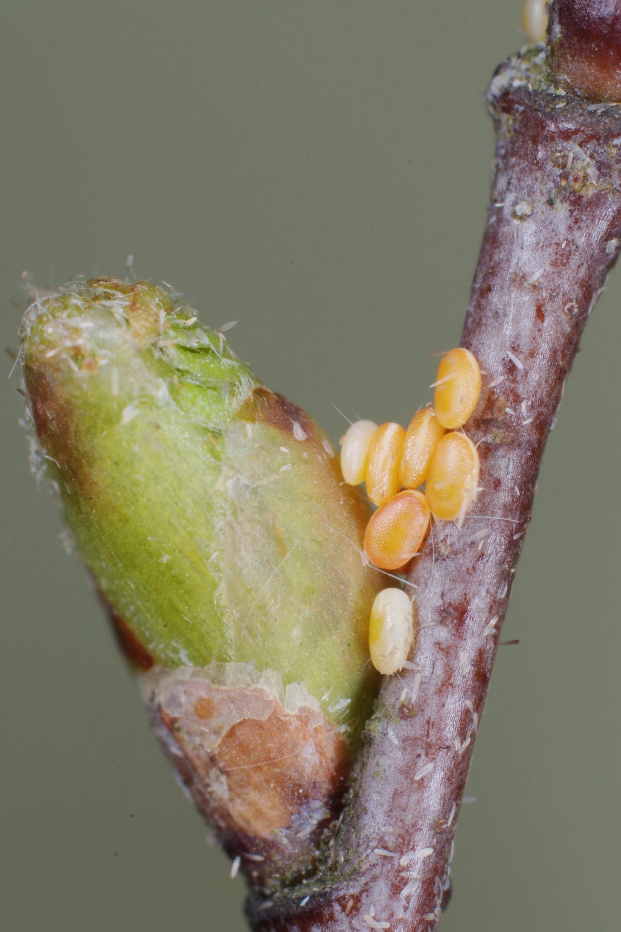 Half maart-half mei in één generatie. De vlinders rusten overdag op boomstammen of paaltjes. Ze vliegen vanaf de schemering, komen op licht en bezoeken wilgenkatjes.