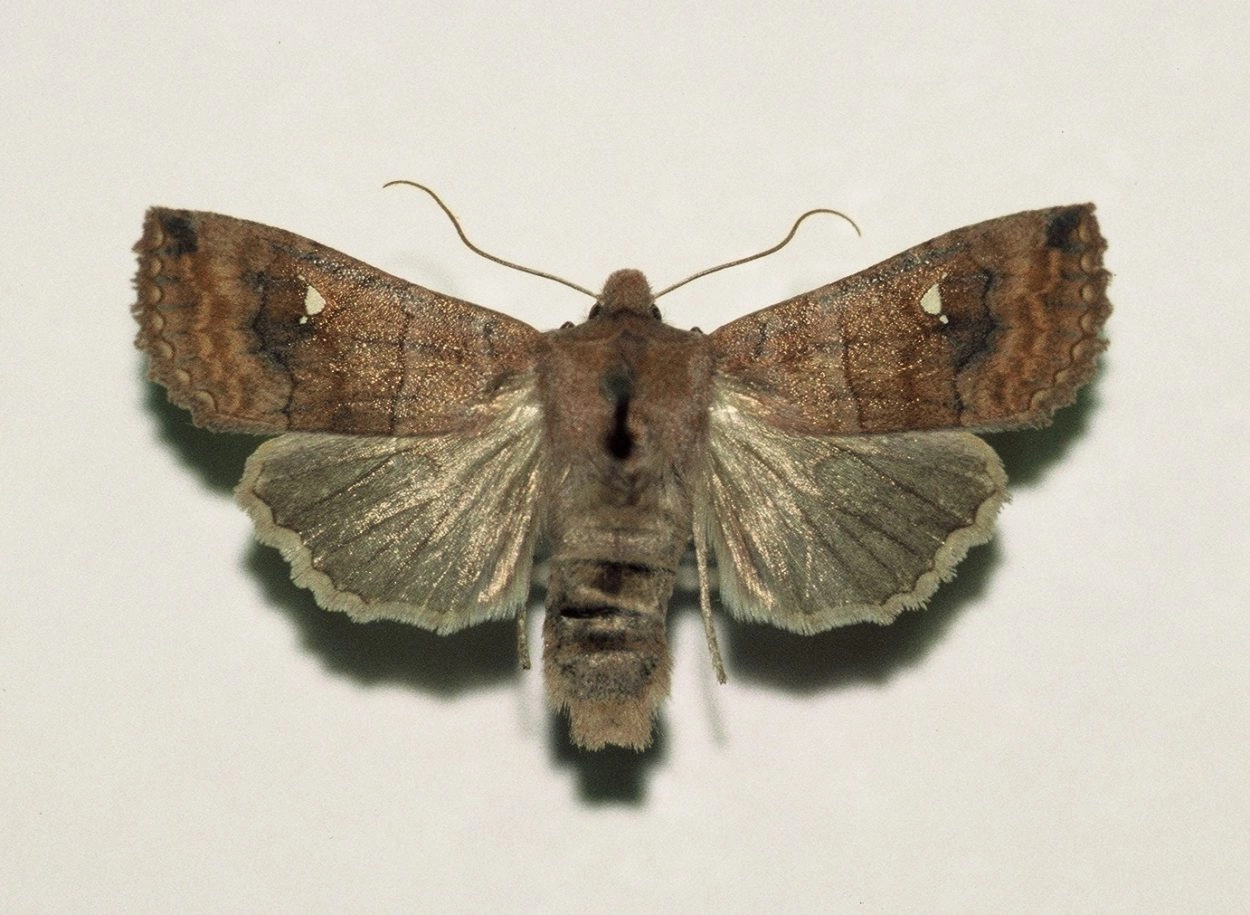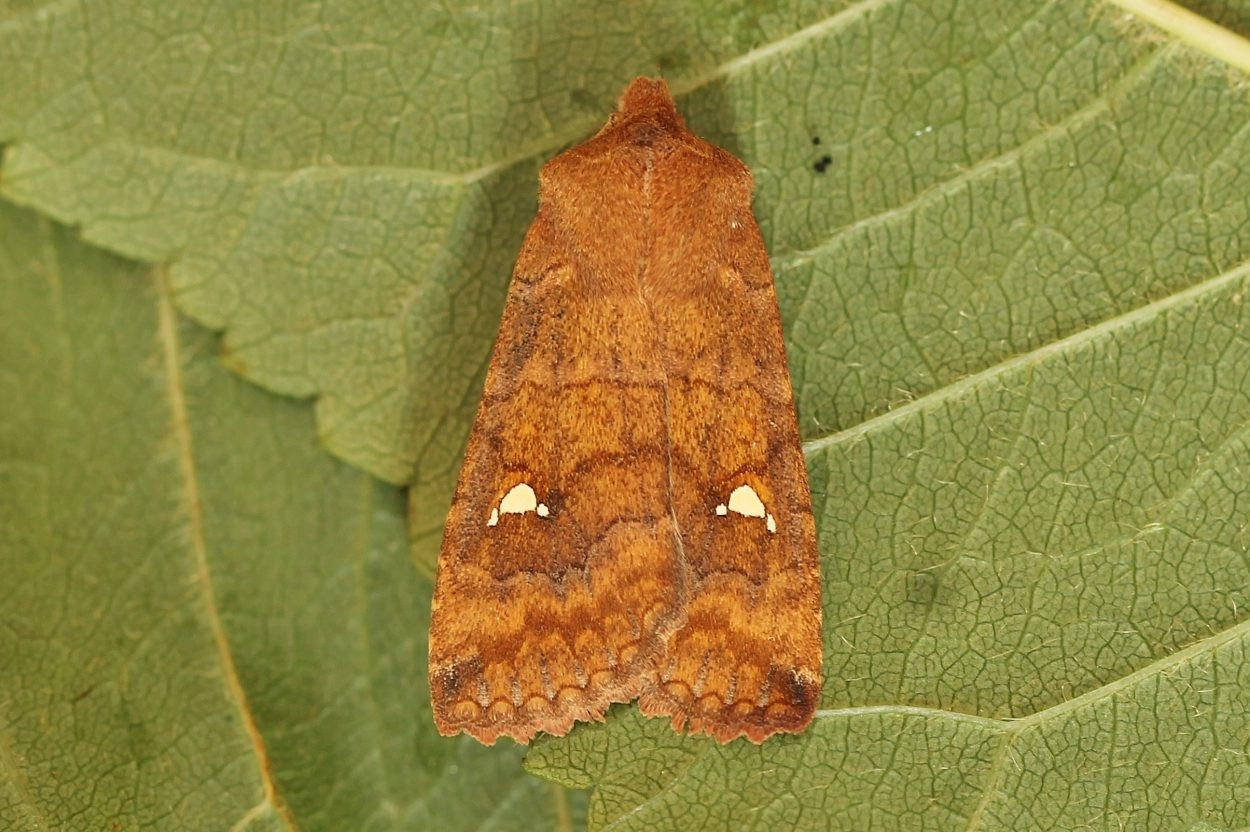 Voorvleugellengte: 17-20 mm. Deze uil is goed te herkennen aan de kleine niervlek op de voorvleugel met aan weerszijden daarvan een klein ‘satellietvlekje’. De kleur van de niervlek varieert van wit tot roomgeel, oranje of oranjebruin. Soms verschillen de vlekjes in kleur van de niervlek of onderling; er zijn ook vlinders waarbij de vlekjes op de op ene vleugel oranje zijn en op de andere vleugel wit. Hoewel de vlekjes soms moeilijk zijn te onderscheiden, zijn ze vrijwel nooit afwezig. De voorvleugel is vrij effen en heeft een warme kaneelbruine, oranjebruine of geelbruine kleur. Verse vlinders hebben soms een blauwachtige of purperachtige glans. Langs de geschulpte achterrand loopt een golvende of zigzaggende franjelijn.