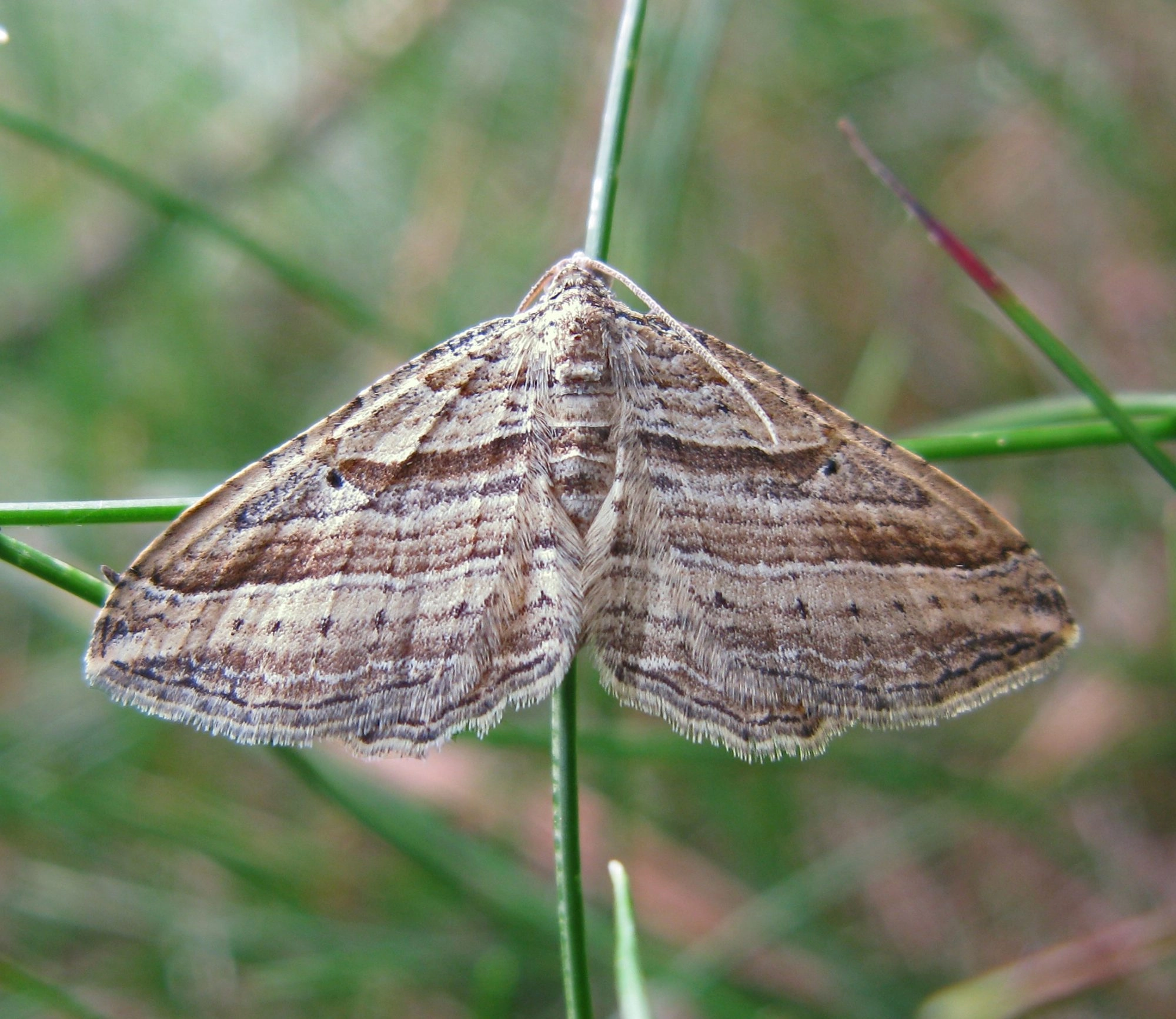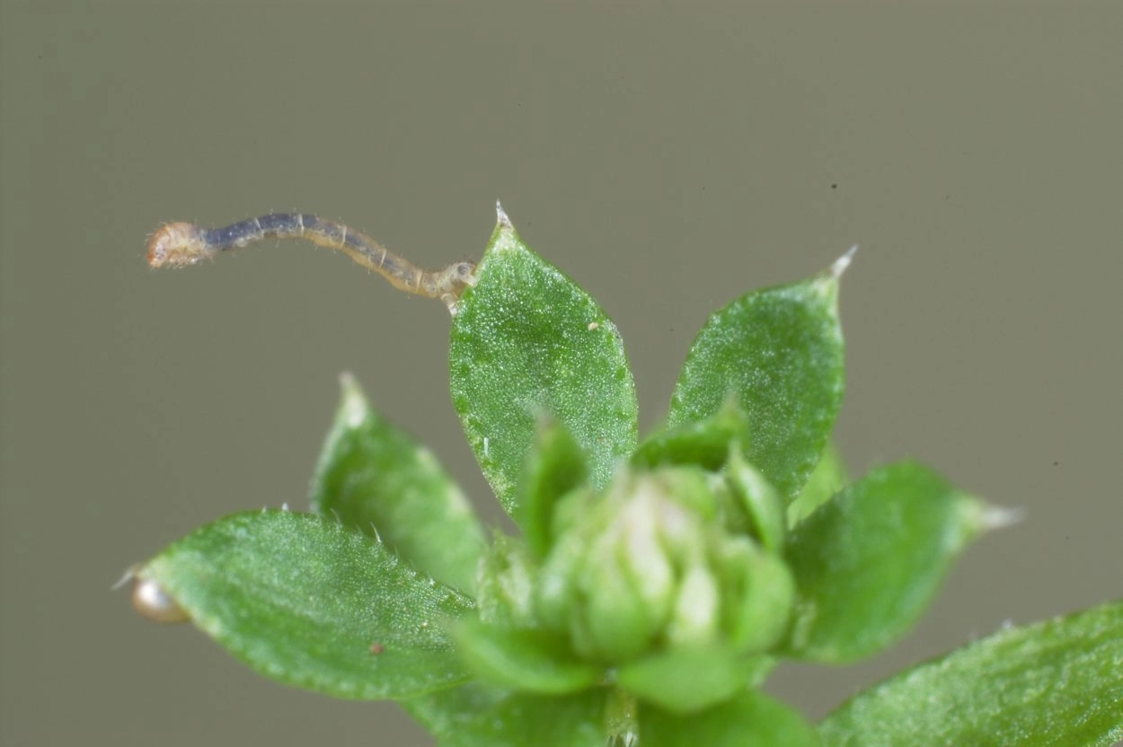 Vroege walstrospanner (Colostygia multistrigaria).N.B.: vergelijk behalve de uiterlijke kenmerken ook de tijd van het jaar waarin de rupsen voorkomen, het habitat en de waardplant(en).