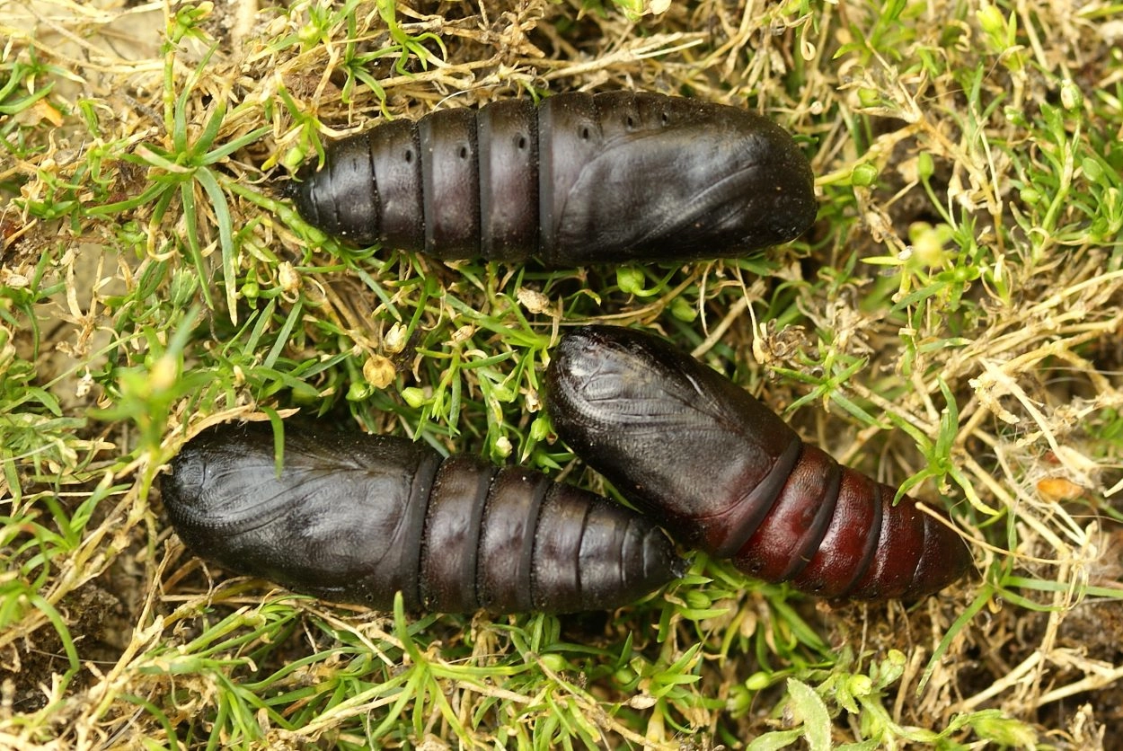 Rups: juli-september. Na het uitkomen van de grote eilegsels blijven de rupsen aanvankelijk bijeen en foerageren ze in groepen, zowel overdag als ´s nachts; de volgroeide rupsen leven solitair en worden vaak gezien als ze over de grond kruipen op zoek naar een plaats om zich te verpoppen. De soort overwintert als pop in een holte in de grond.