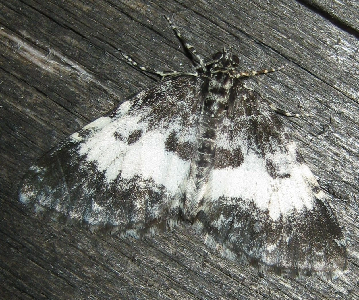 Voorvleugellengte: 14-15 mm. Kenmerkend is de brede, in het midden enigszins geknikte, witte band op de overwegend bruinzwarte voorvleugel; vanuit het donkere middenveld steekt een dubbele stompe punt in deze witte band. De zoom van de voorvleugel is bruinachtig zwart en gewoonlijk donkerder dan het middenveld; de grens tussen de donkere zoom en de witte band is altijd vrij scherp. De witte band loopt door op de achtervleugel en is daar nog breder; de achtervleugel heeft bovendien een brede zwarte zoom.