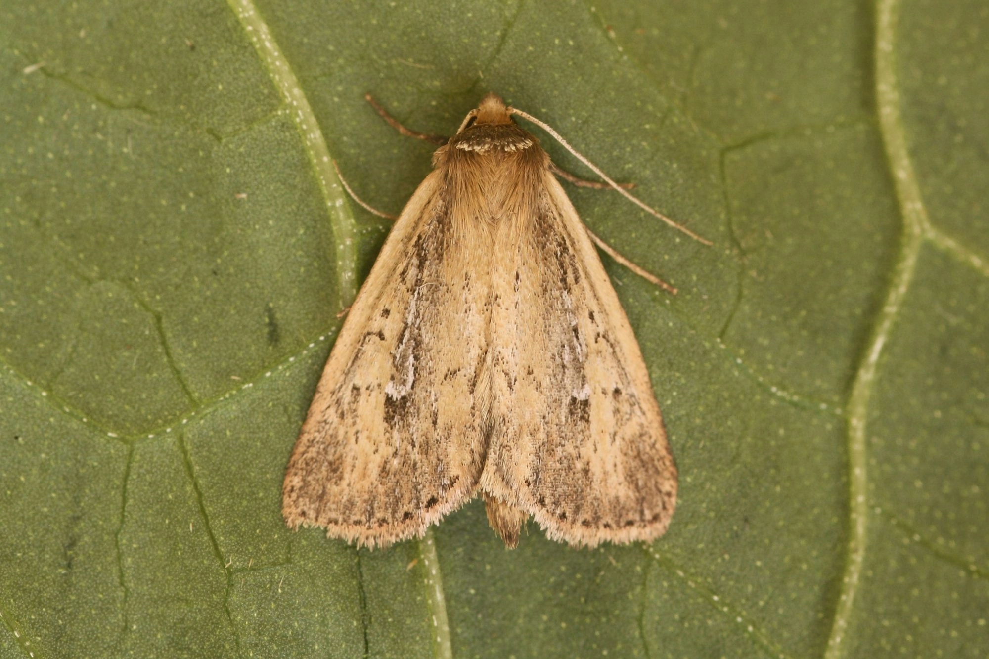 Geelbruine rietboorder (Archanara dissoluta).N.B.: vergelijk behalve de uiterlijke kenmerken ook de tijd van het jaar waarin de rupsen voorkomen, het habitat en de waardplant(en).