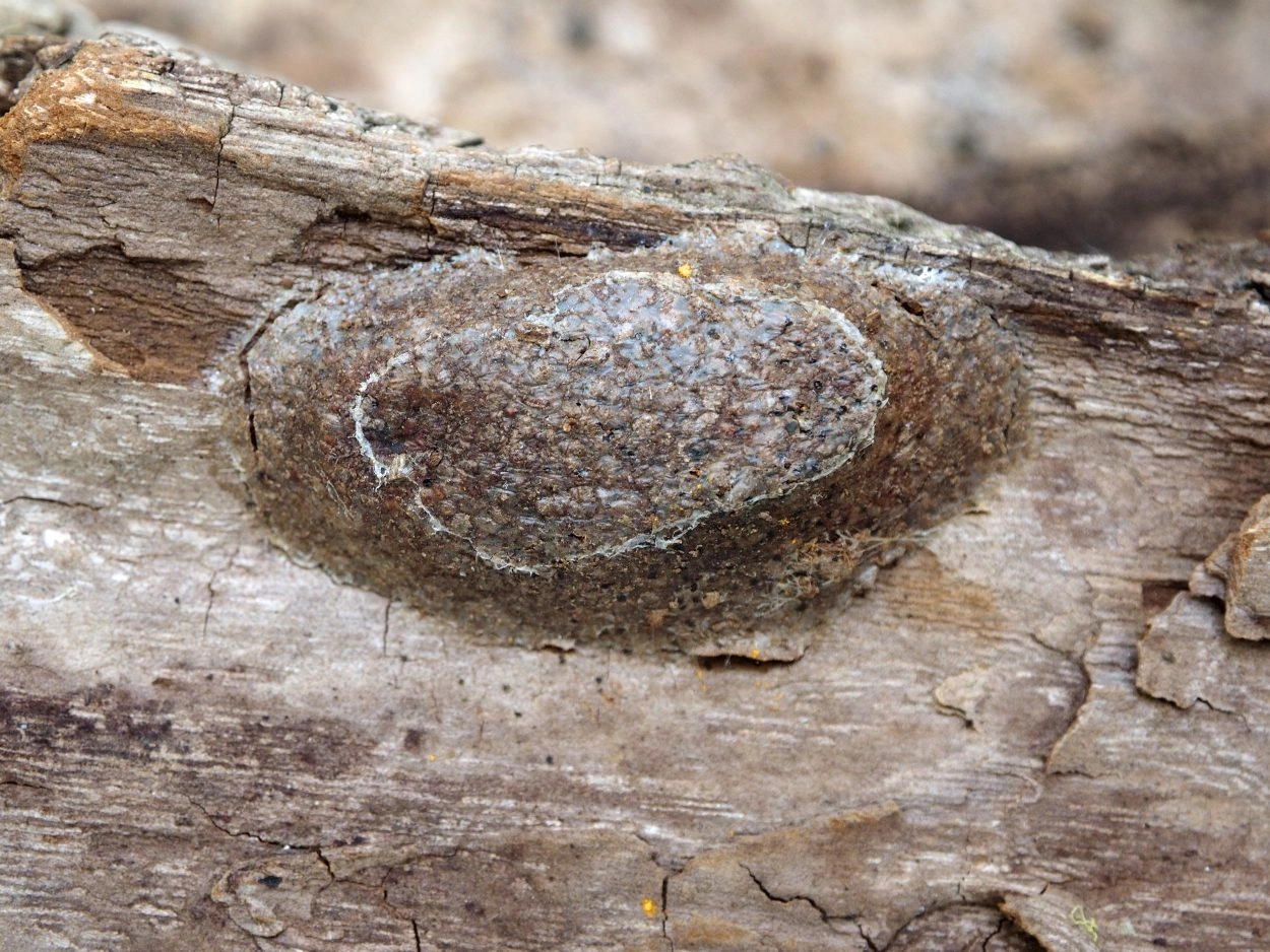 maar heeft een witte vlek die vanuit de zadelvlek op de rug doorloopt in de richting van het tweede paar buikpoten. De soort overwintert als pop in een harde cocon waarin houtsplinters verwerkt zijn."