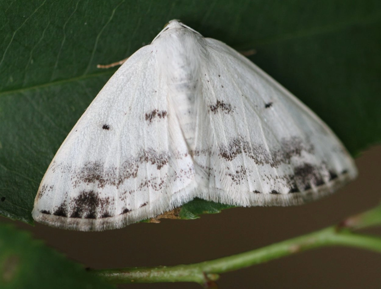 Voorvleugellengte: 13-15 mm. Een witte spanner met langs de achterrand een in vorm en intensiteit variërend bruinzwart vlekkenpatroon (bij het vrouwtje meestal iets zwakker dan bij het mannetje). Het donkere vlekkenpatroon wordt door tenminste één witte golflijn doorsneden. Op de voorvleugel bevindt zich bovendien een donkere middenvlek en langs de binnenrand is een donkere aanzet van een dwarslijn zichtbaar.