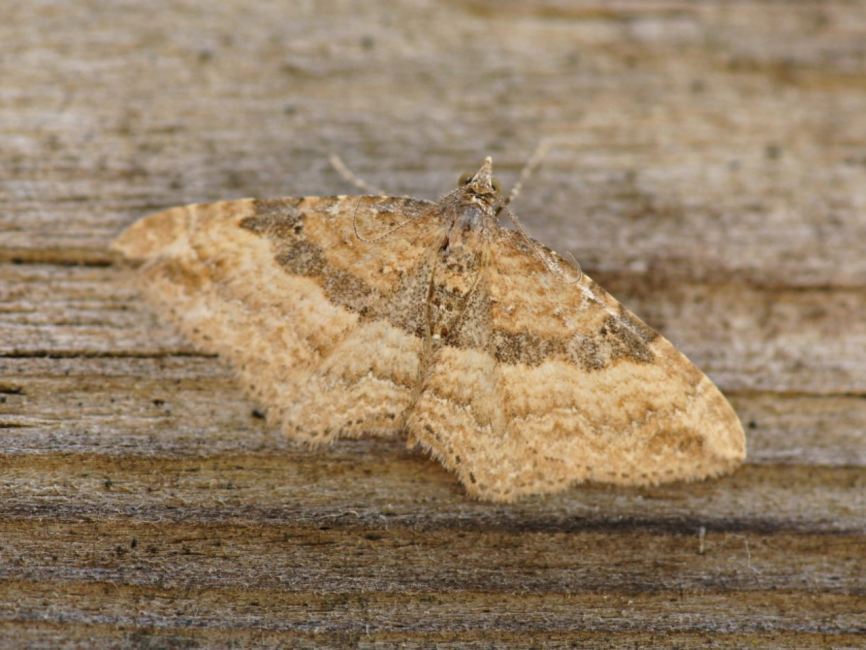 Voorvleugellengte: 12-14 mm. Het mannetje heeft een bruine, vaak wat geel of oranje getinte voorvleugel met een smalle onregelmatige, soms onderbroken donkergrijze zone aan de binnenzijde van het middenveld; in de vleugelpunt bevindt zich een vaag donker streepje. Het vrouwtje heeft een vergelijkbaar vleugelpatroon maar is helder bruin van kleur. Op de voorvleugel van het vrouwtje bevindt zich een donkere witgeringde middenstip en er zijn soms zeer fijne gegolfde witte dwarslijnen zichtbaar. Er is weinig variatie.