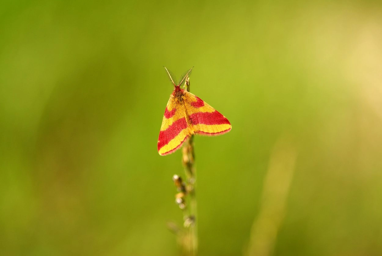Eind april-eind september in twee of drie generaties. De vlinders vliegen overdag bij zonnig weer laag boven de grond en worden dan soms voor een dagvlinder aangezien. Als de zon achter een wolk verdwijnt gaan ze direct laag in de vegetatie zitten met gespreide, enigszins omhoog gehouden vleugels; ze zijn gemakkelijk te verstoren.