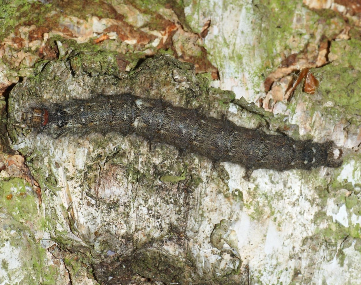 Rups: mei-juli. De rups foerageert ´s nachts en rust overdag tegen een twijg of tegen de boomschors. De rups verpopt zich onder de schors of in de strooisellaag in een cocon waarin aarde wordt verwerkt. De soort overwintert als ei vastgehecht aan de bast van een twijg of de stam.