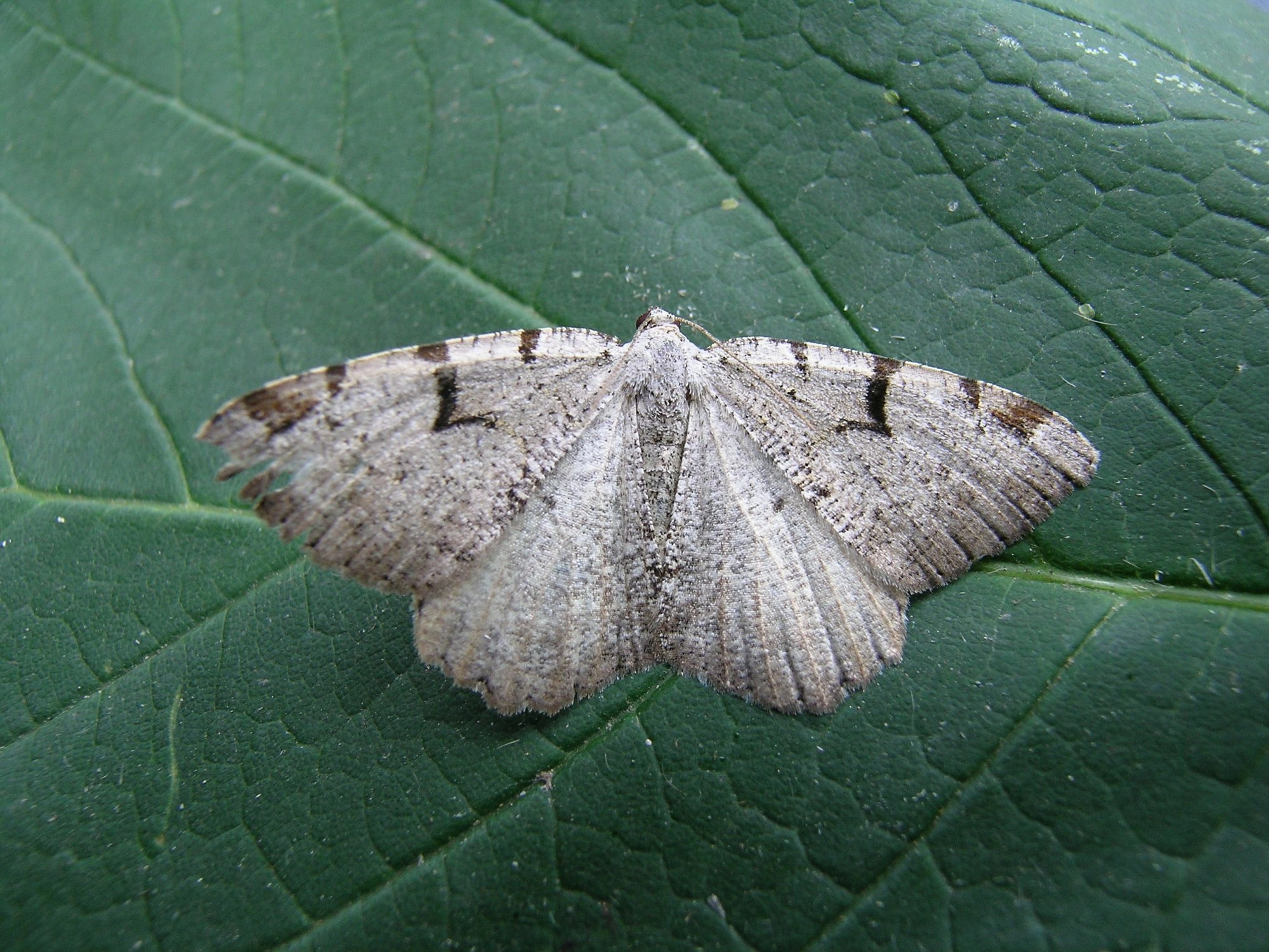 Voorvleugellengte: 14-17 mm. Op beide voorvleugels bevindt zich een duidelijke zwarte V, die in rusthouding van de vleugels samen grofweg een W vormen. Op de lichtgrijze voorvleugel zijn nog drie opvallende vlekken te zien langs de voorrand. De tekening en de intensiteit van de grondkleur kunnen variëren: soms met een violette tint en heel soms bruingrijs of zwartbruin.