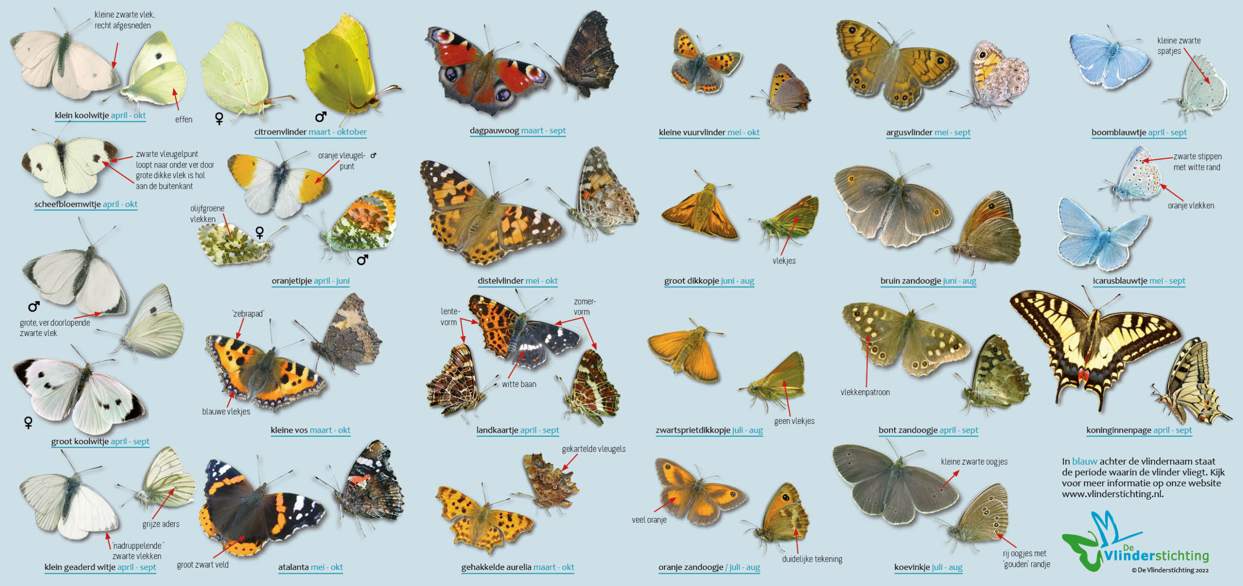 - Herkenningskaart van de meest voorkomende soorten dagvlinders (pdf)